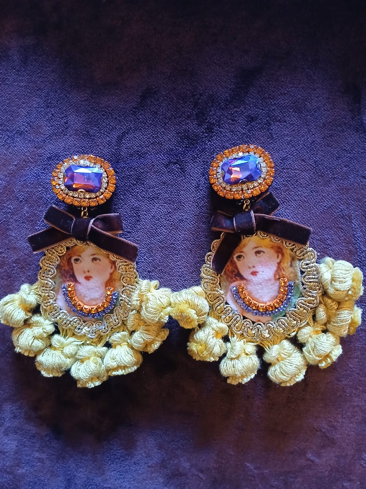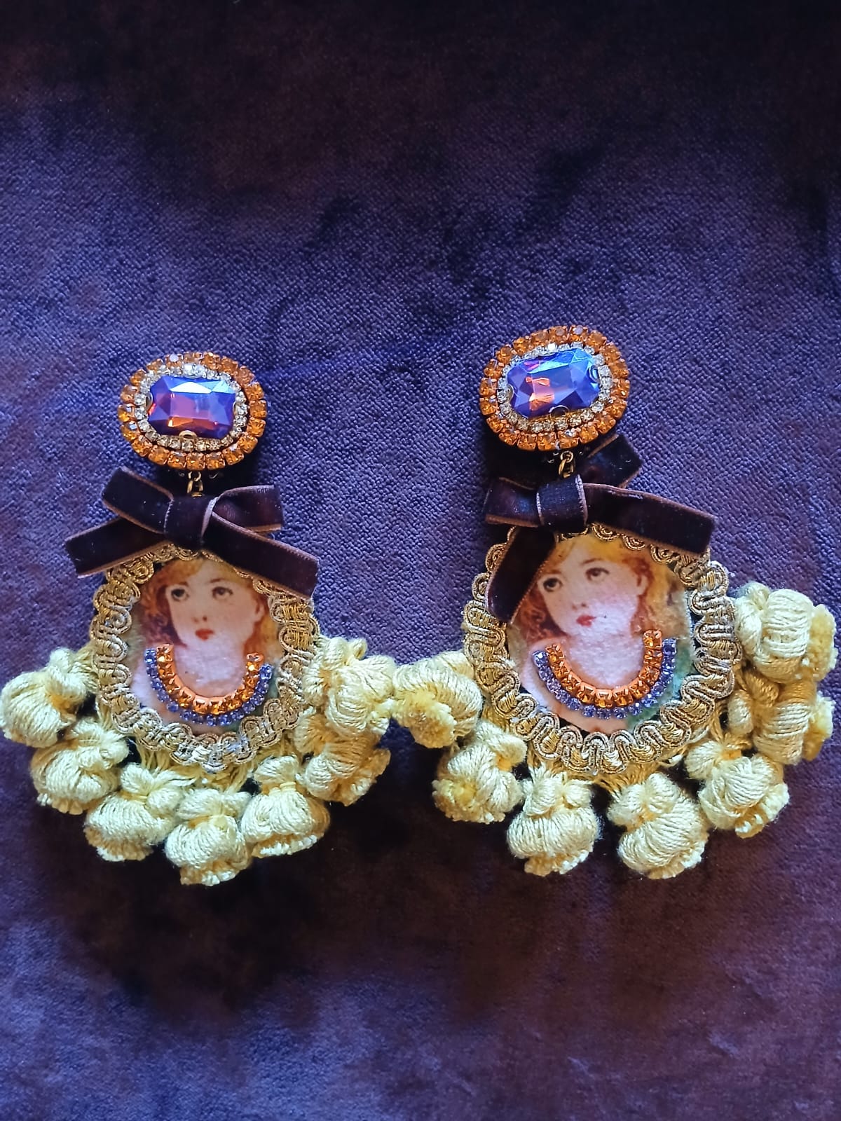 Elegantissimo orecchino con cherubino e nappine dorate.