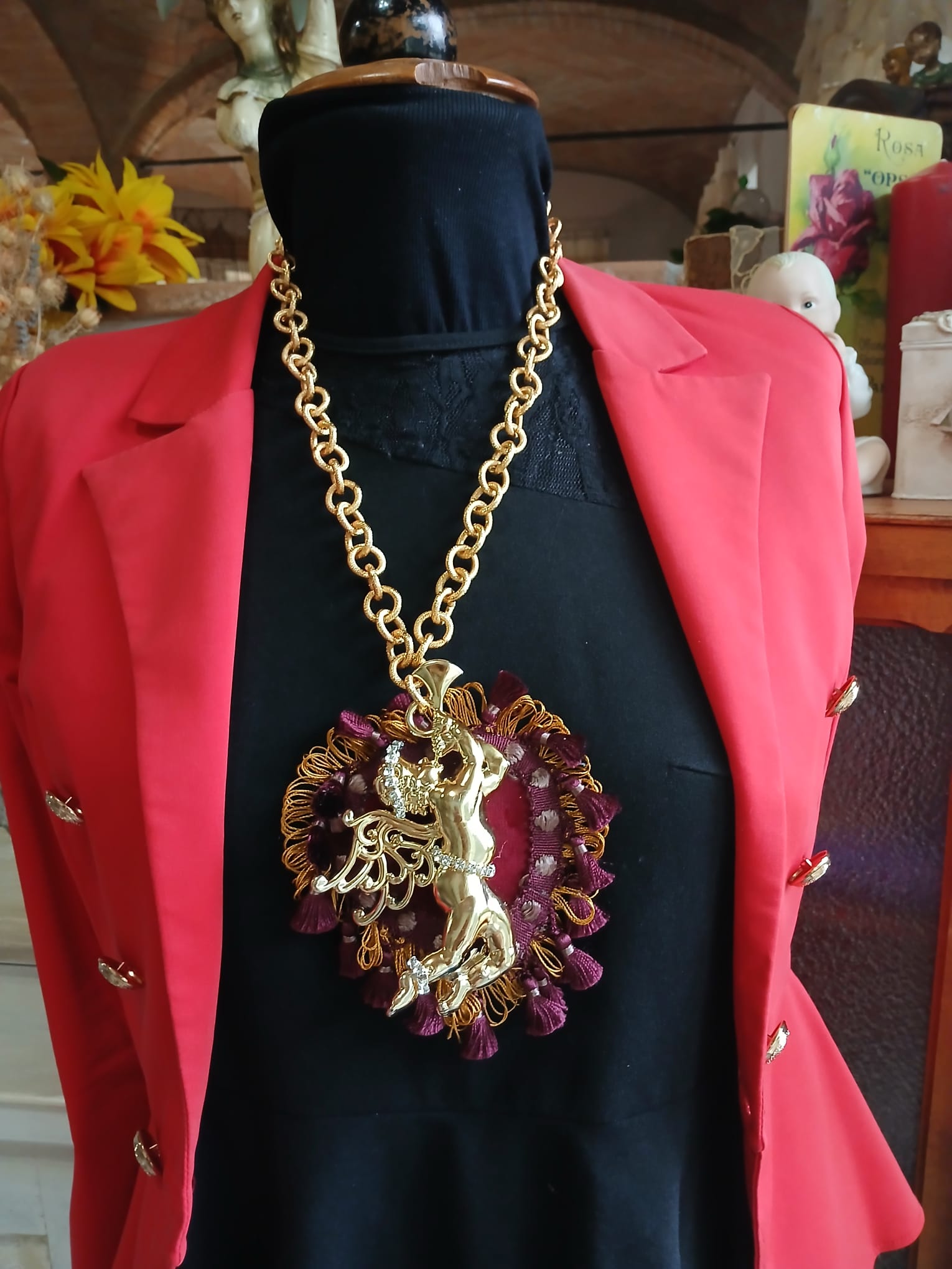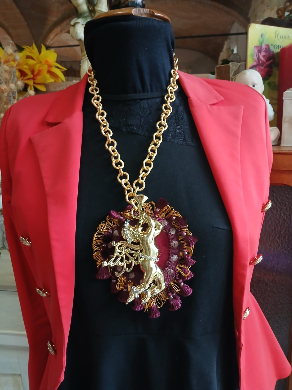 Collana con grande ciondolo putto dorato