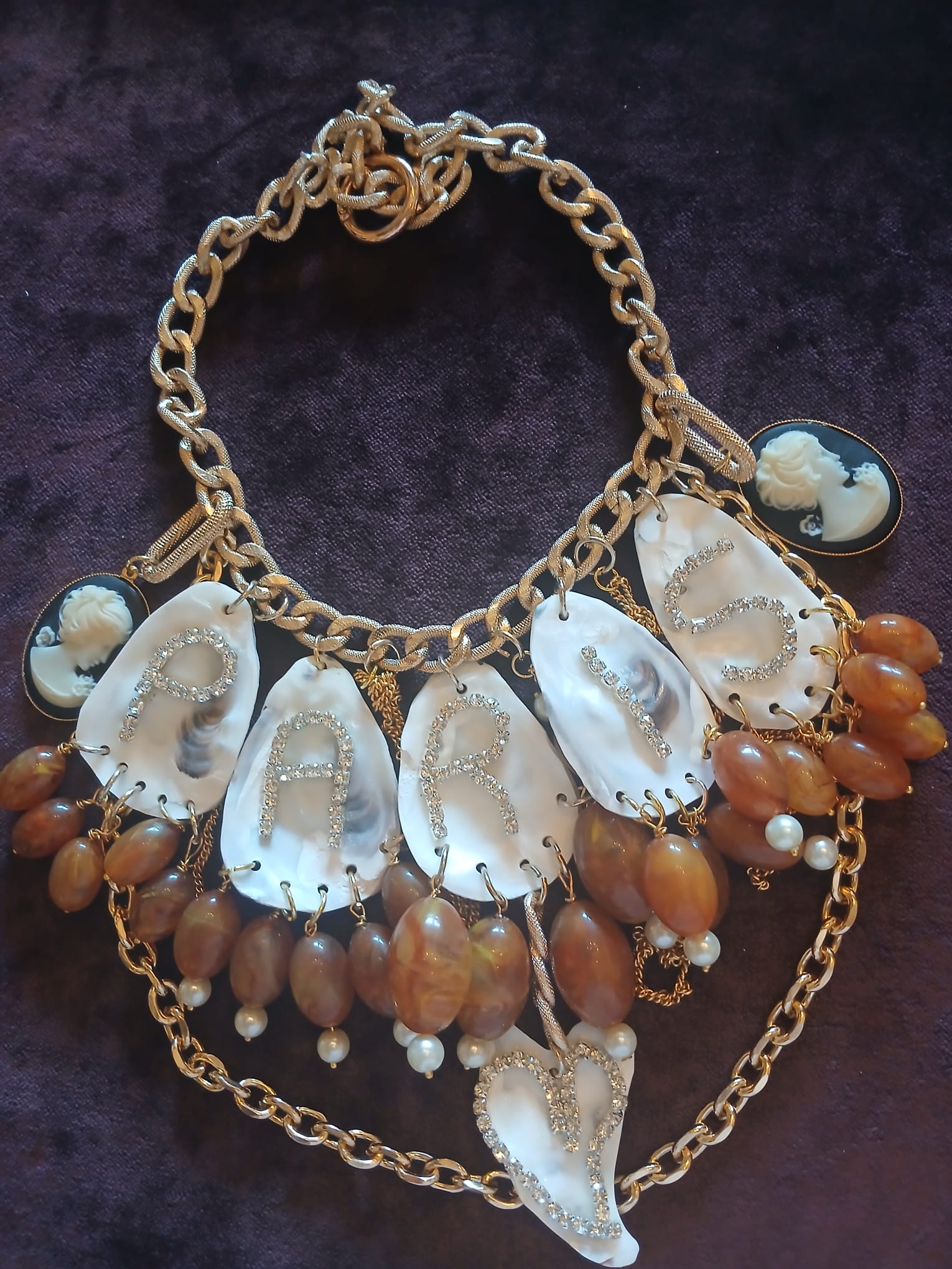 Bellissima ed importante collana composta da vere ostriche interamente lavorate a mano riportanti la scritta PARIS.