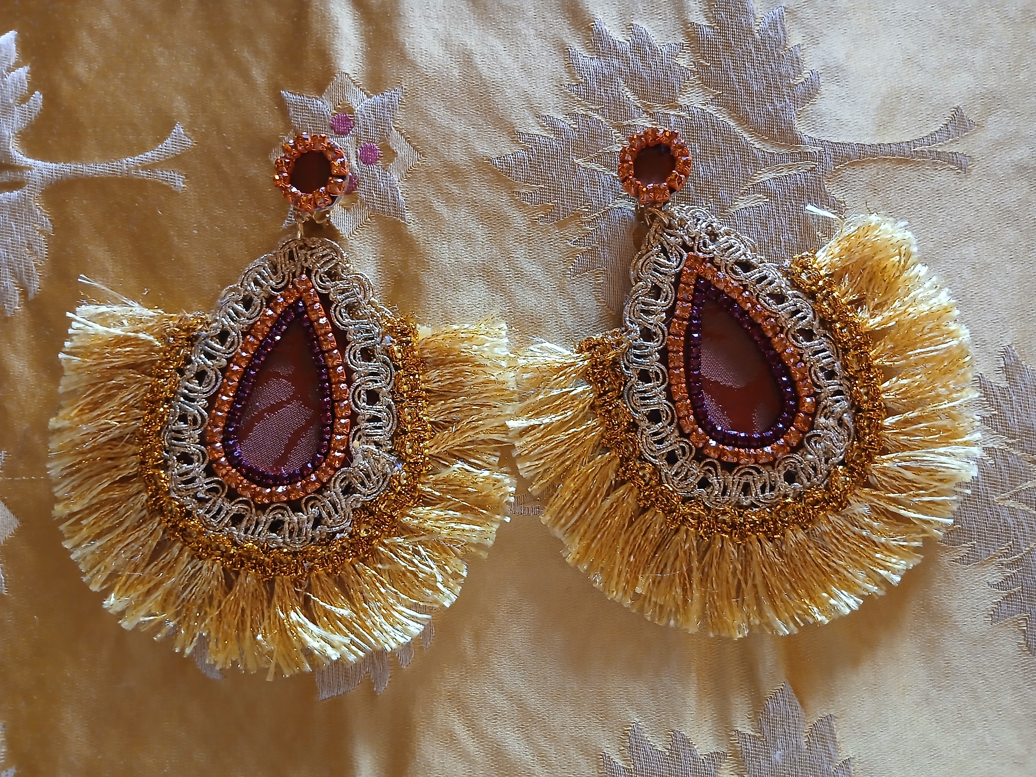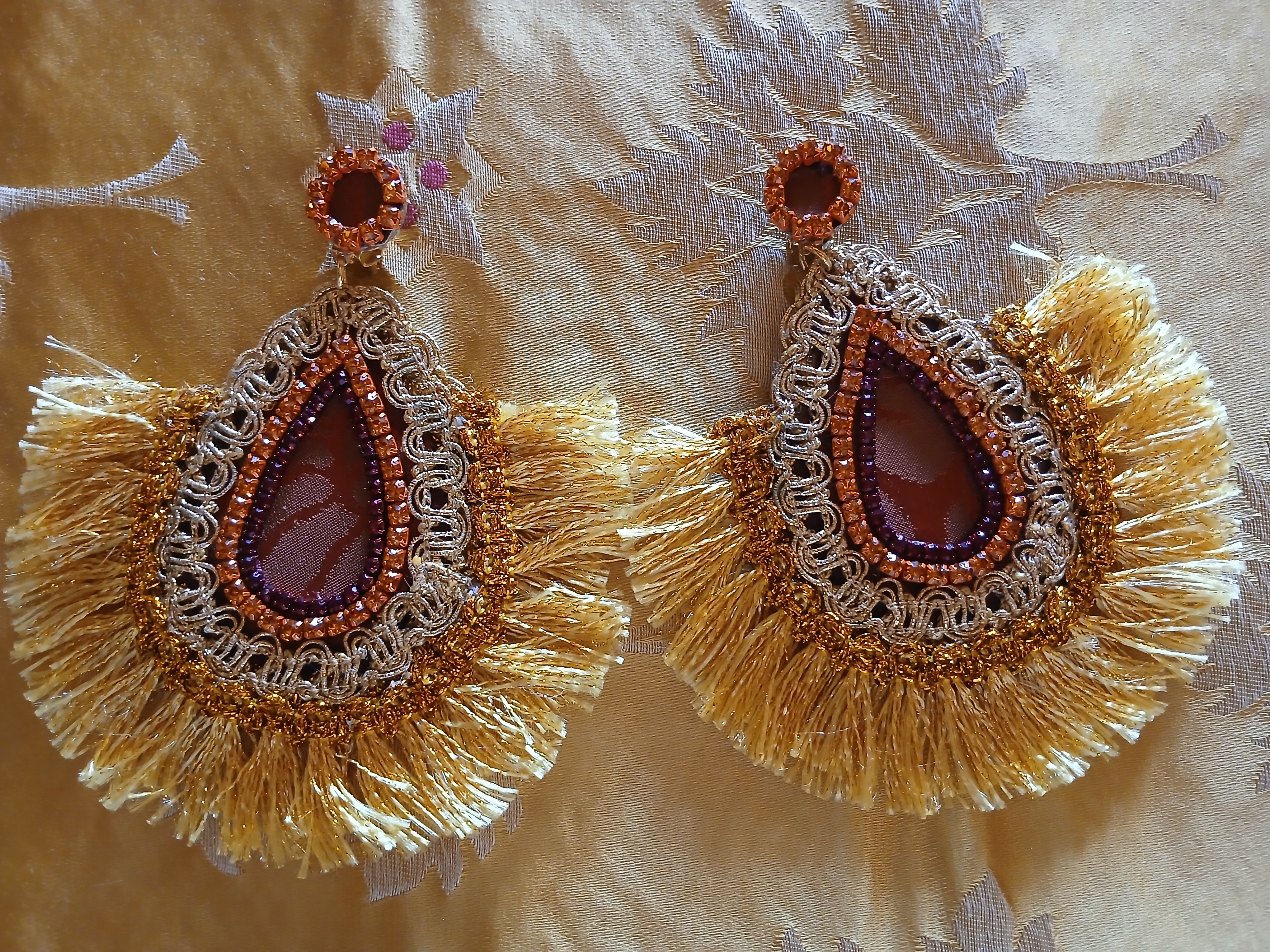 Bellissima passamaneria dorata con giro di catena strass arancio e bourdeux.