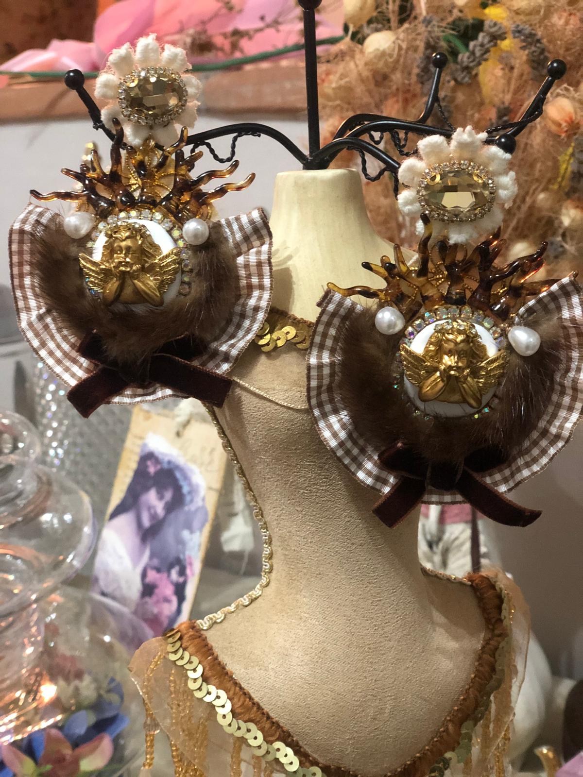 Stupendi orecchini con visone e coralli in resina