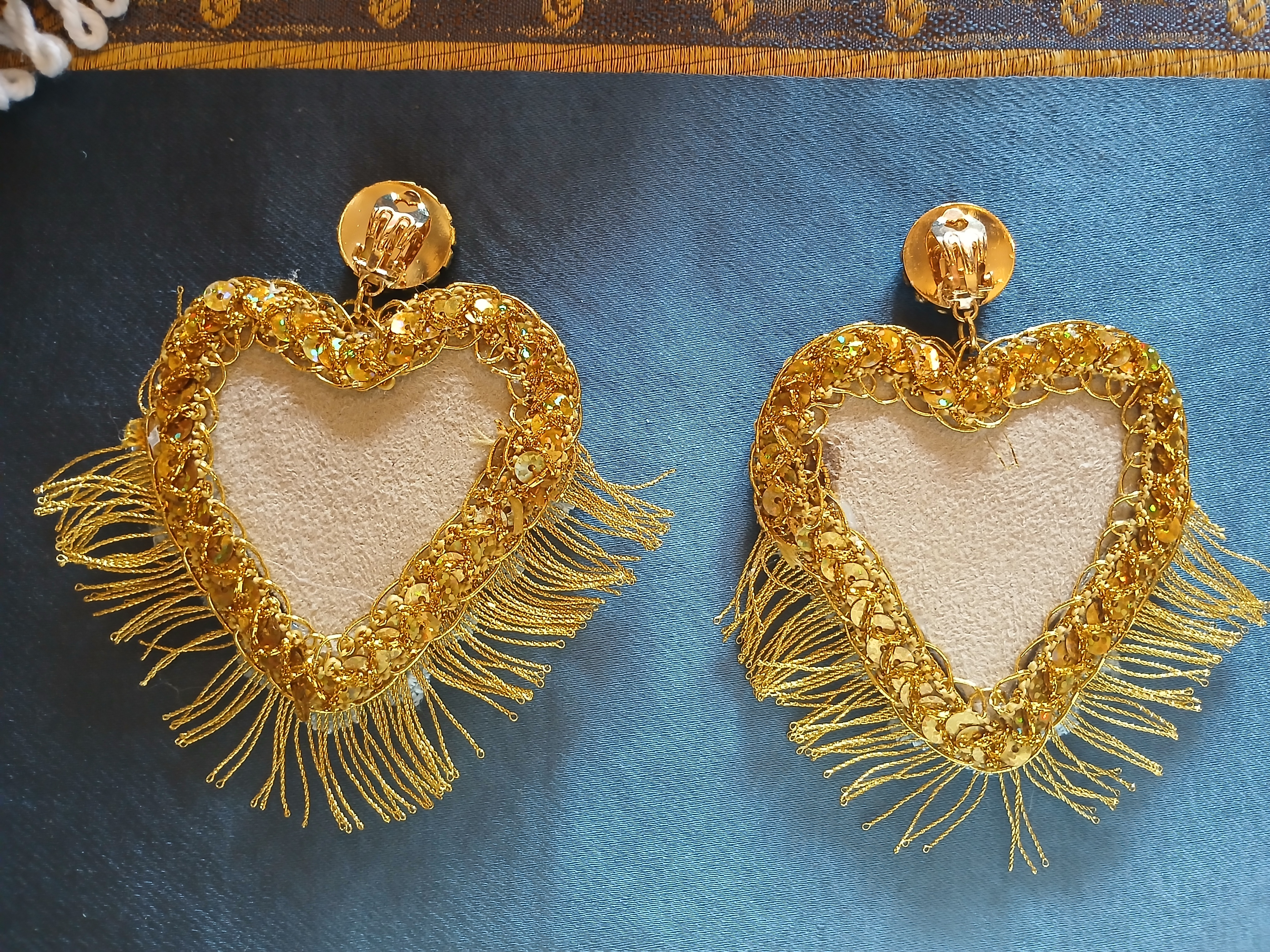 Passameneria color celeste e color oro.